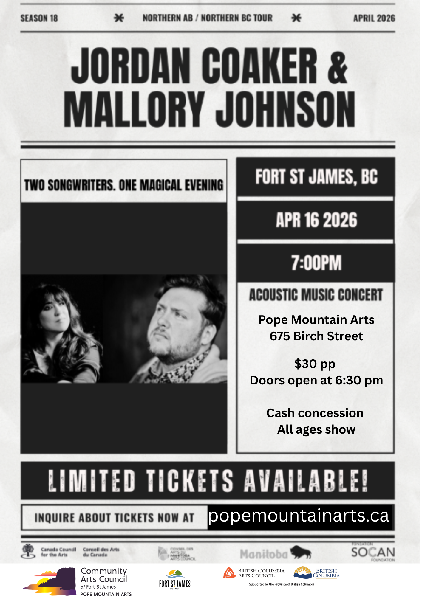 Jordan Coaker is a Newfoundland-born singer, songwriter, and music entrepreneur known for his warm storytelling, rich vocals, and steadfast dedication to building community through art. As one half of the award-winning folk/americana duo Quote the Raven, he has toured internationally, earning critical praise for his emotive performances and honest songwriting. Jordan’s work blends East Coast heart with modern sensibilities, creating music that feels both intimate and cinematic. Beyond the stage, he is a committed advocate for emerging artists, working as a booking agent and collaborator to help musicians find their footing in an ever-changing industry. With heartfelt lyrics, a grounded presence, and a genuine passion for connection, Jordan continues to carve a meaningful place in the music world one song, one show, and one community at a time.